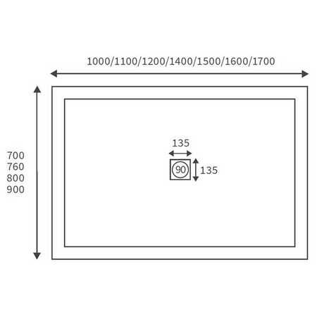 Opulent 25mm Ultra-Slim 1700mm x 800mm Rectangular Tray and Waste (OBC3861)