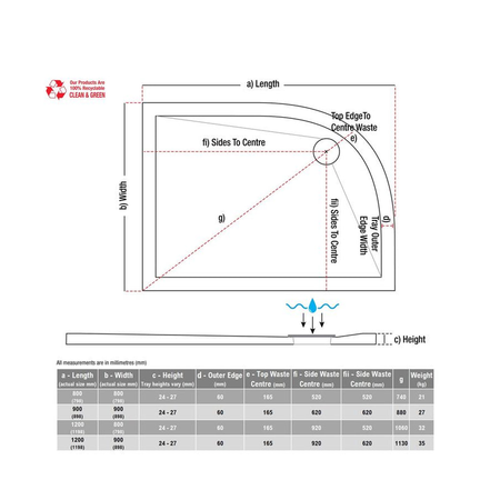 Opulent 28mm Anti-Slip Ultra-Slim 1200mm x 800mm Offset Quadrant Tray and Waste - Right Hand (OBC111490)