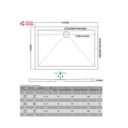 Opulent 28mm Anti-Slip Ultra-Slim 1700x900mm Rectangular Tray and Waste (OBC111484)