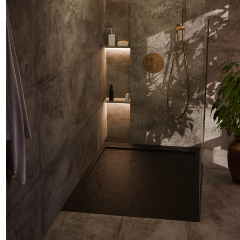 Opulent 30mm Slate 1700x800mm Rectangular Tray and Waste - Black (OBC111459)