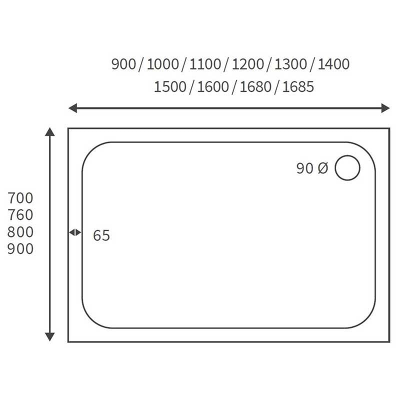 Opulent 45mm Low Profile 1400x900mm Rectangular Tray and Waste - White (OBC104336)