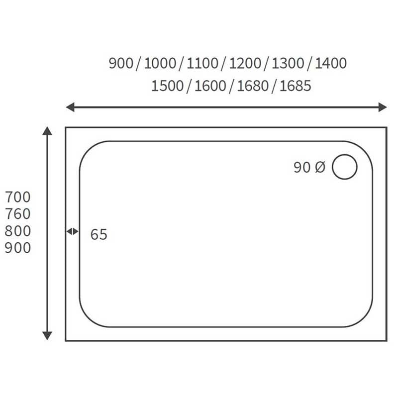 Opulent 45mm Low Profile 1500x900mm Rectangular Tray and Waste - White (OBC104340)