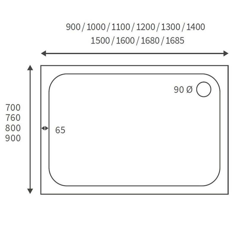 Opulent 45mm Low Profile 1700x700mm Rectangular Tray and Waste - White (OBC111398)