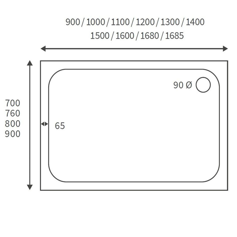 Opulent 45mm Low Profile 1700x760mm Rectangular Tray and Waste - White (OBC111399)