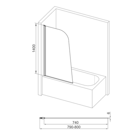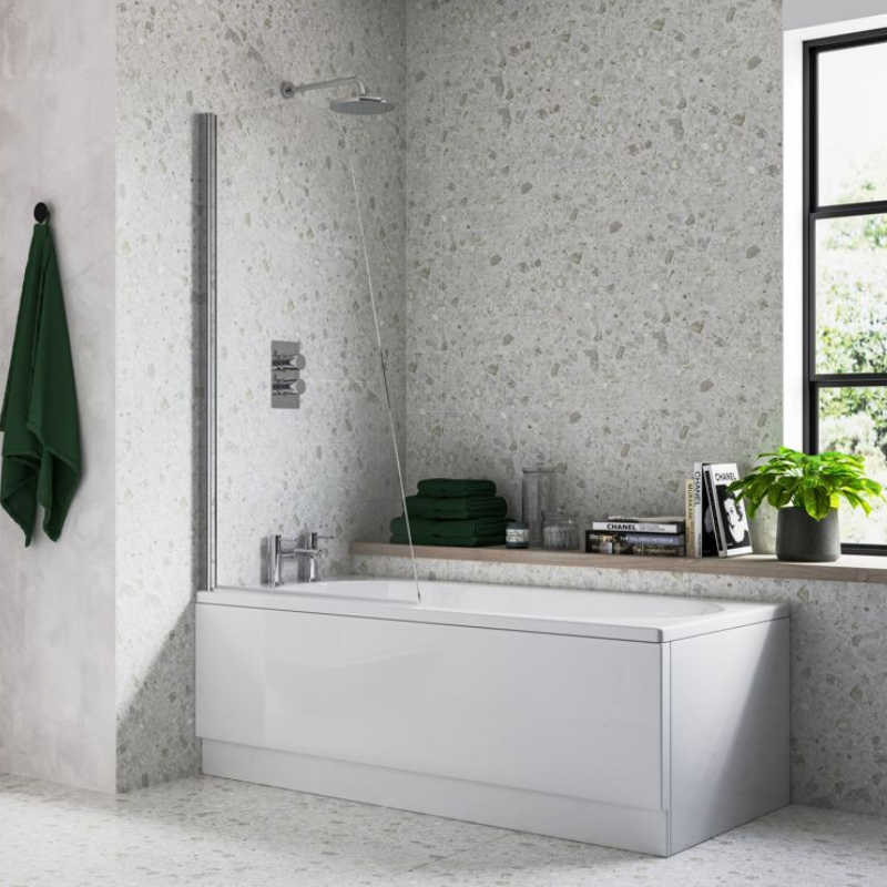 Opulent 800x1400mm Sail Bath Screen (6mm) - Chrome (OBC111429)