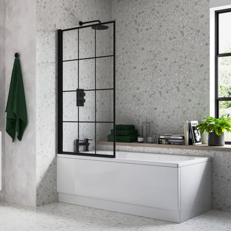 Opulent 800x1400mm Square Grid Bath Screen (6mm) - Black (OBC111430)