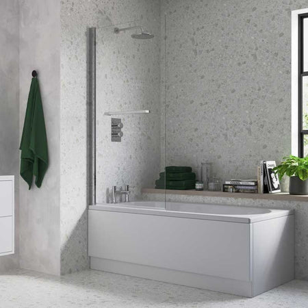 Complete with an easy clean glass treatment, the bath screen is ideal for adding into any family bathroom space ensuring an easy life which repels water and build up of dirt and grime for a quick and easy cleaning experience. Perfectly designed to create a fully functioning showering space, the bath screen adds an effective solution for every bath space completing your bathroom suite to a high standard. Finished off with a rail, you can complete your shower area and add a space to store your towel neatly in one space.