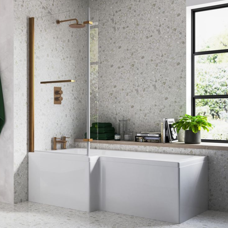 Opulent 815x1500mm L Shape Bath Screen (6mm) - Brushed Bronze (OBC111390)
