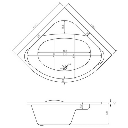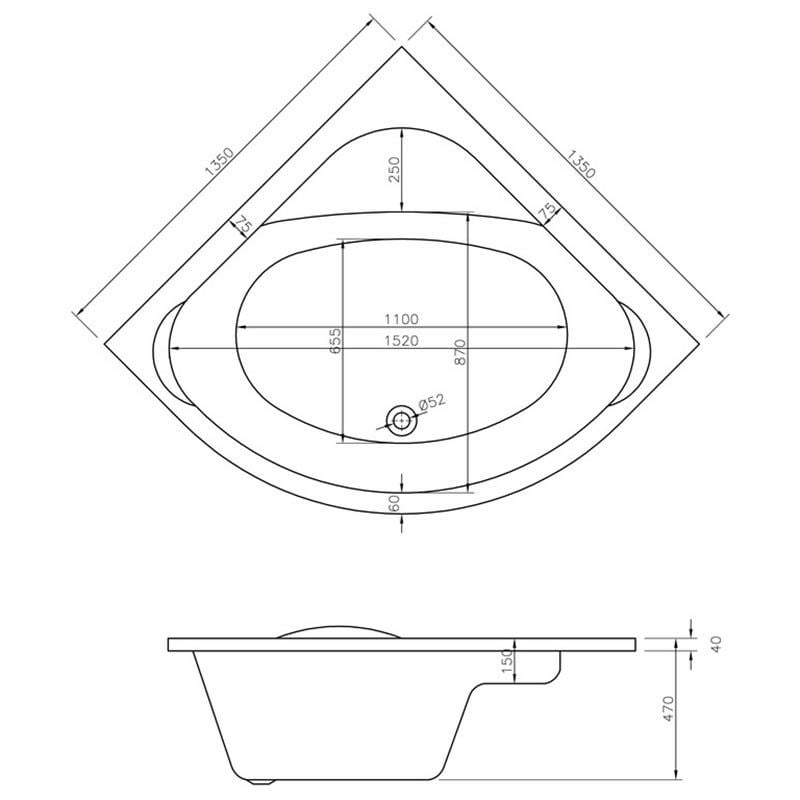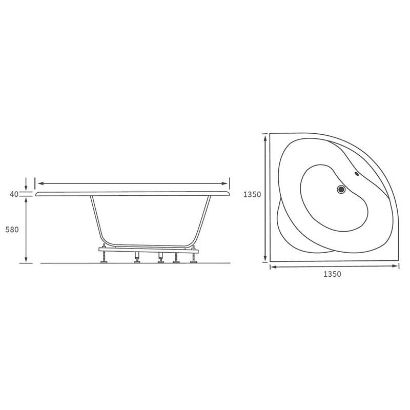 Opulent Amos Standard 1350x1350x620mm Corner Bath with Legs (OBC105677)
