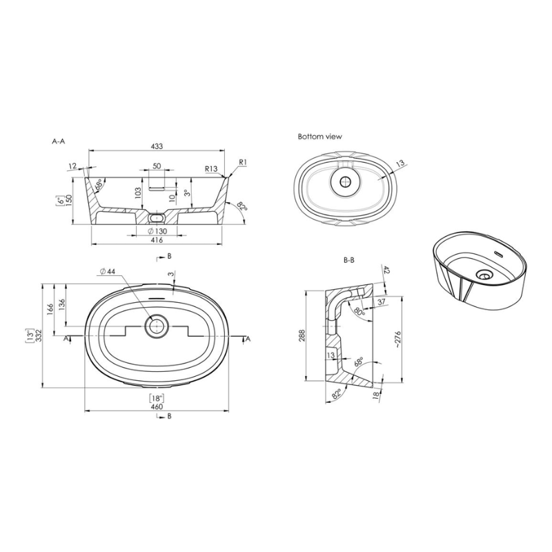 - Width: 460mm