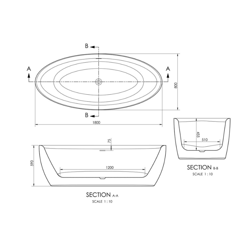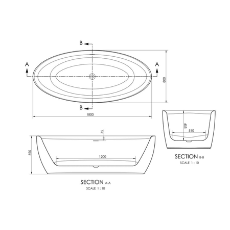Opulent Carey Freestanding 1800x800x580mm Bath (OBC104117)