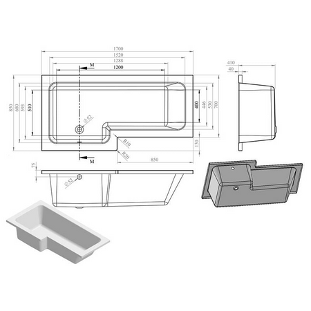 Opulent Carlisle L Shape 1700x850x560mm Shower Bath Pack - Left Hand - Chrome (OBC105600)