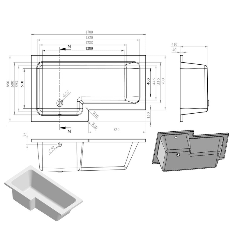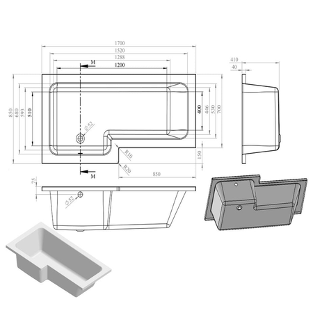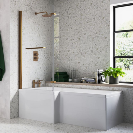 Opulent Carlisle L Shape Supercast 1700x850x560mm Shower Bath Pack - Left Hand - Brushed Bronze (OBC111385)