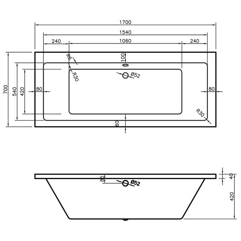 Opulent Carlisle Square Double End 1700x700x550mm Bath with Legs (OBC105651)