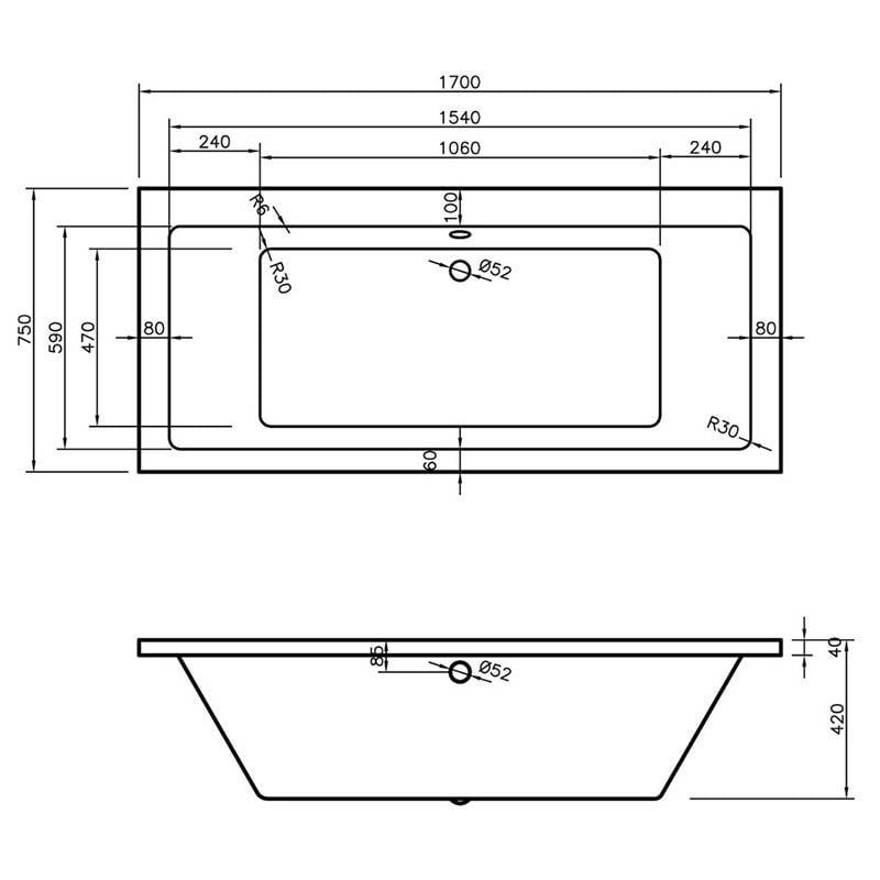 Opulent Carlisle Square Double End 1700x750x550mm Bath with Legs (OBC105652)