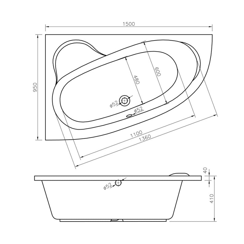 Opulent Cassidy 1500x950x600mm Offset Corner Bath with Legs - Left Hand (OBC105672)