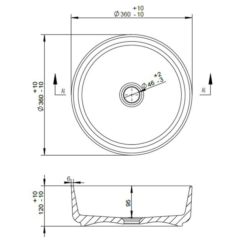 Opulent Churchill 355mm Ceramic Round Washbowl and Waste - Matt Black (OBC100510)