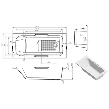 Opulent Cyrus Gripped 1500x700x550mm Bath with Legs (OBC105614)