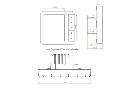 - Simplistic, yet stylish underfloor heating thermostat designed for use with electric underfloor heating.