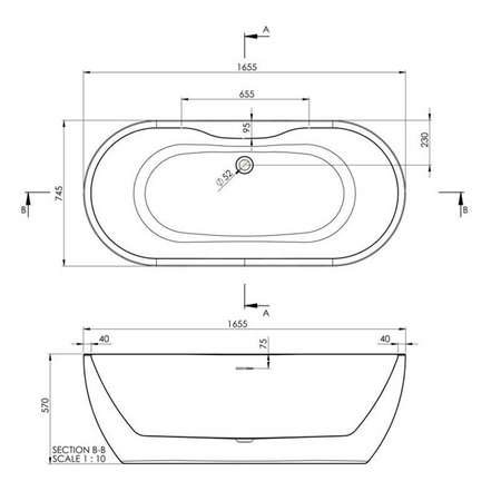 Opulent Freestanding 1650x745x580mm Bath - Gloss Black (OBC111369)