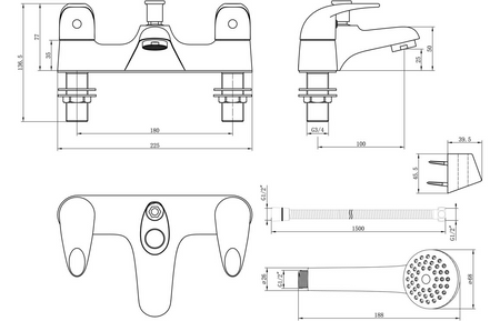 - Low Pressure Deck Mounted Chrome Bath Shower Mixer