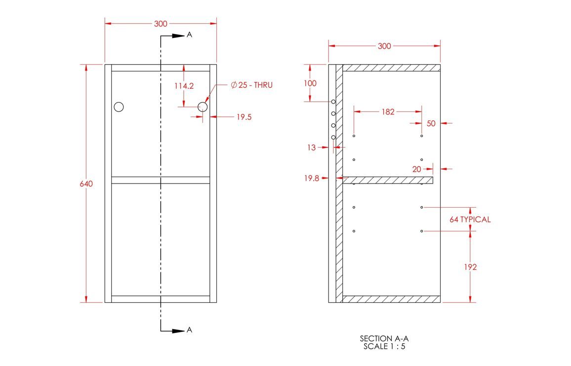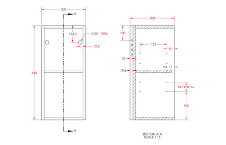 - Dimensions: H 640mm x W 300mm x D 322mm