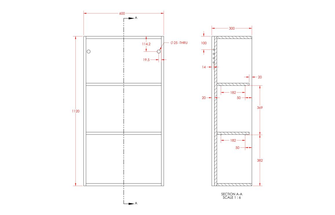 - Dimensions: H 1120mm x W 600mm x D 322mm