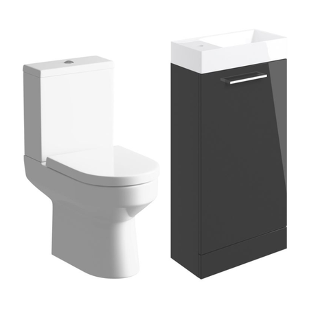 Opulent Leo 410mm Floor Standing Basin Unit and Close Coupled Toilet Pack - Anthracite Gloss (OBC108115)