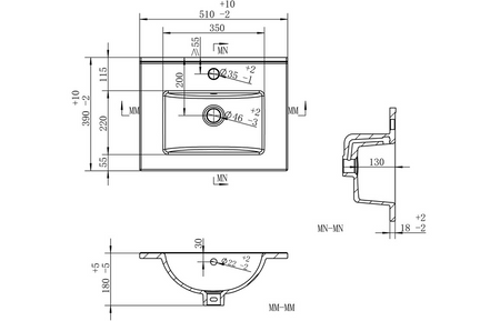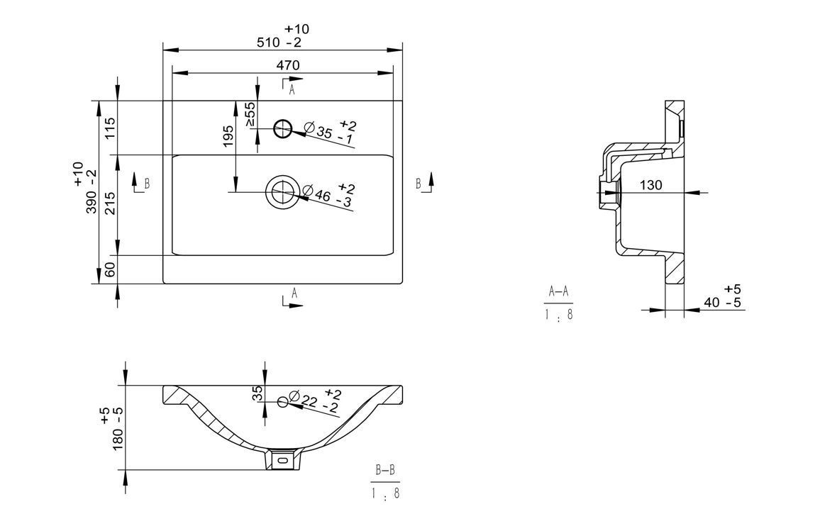 - Includes thin edge ceramic 1TH basin