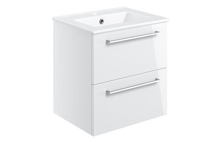 Opulent Leo 510mm Wall Hung 2 Drawer Basin Unit and 1 Tap Hole Thin Edge Basin - White Gloss (OBC103323)