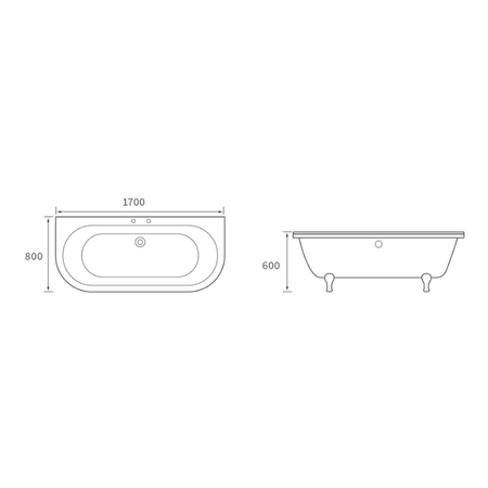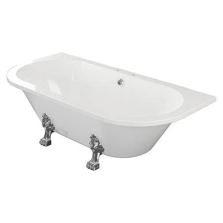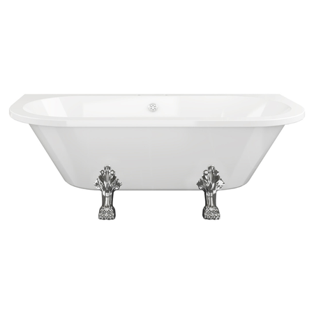 Opulent Levine Freestanding Back To Wall 1700x800x600mm Two Tap Hole Bath with Feet - White (OBC102813)