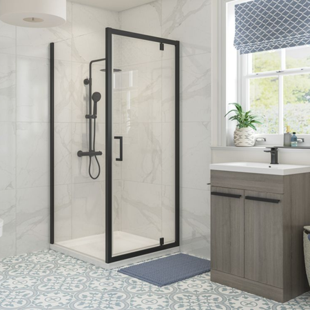 Opulent Lincoln 700mm Pivot Door - Matt Black (OBC116192)