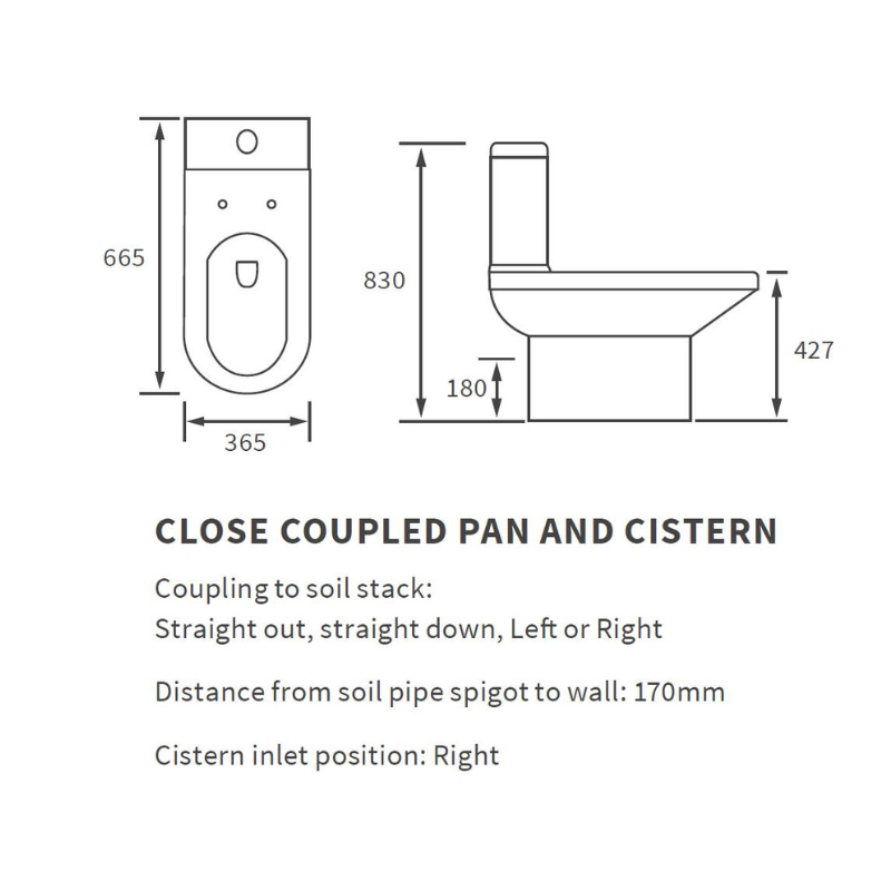 - Distance From Soil Pipe Spigot to Wall: 170mm