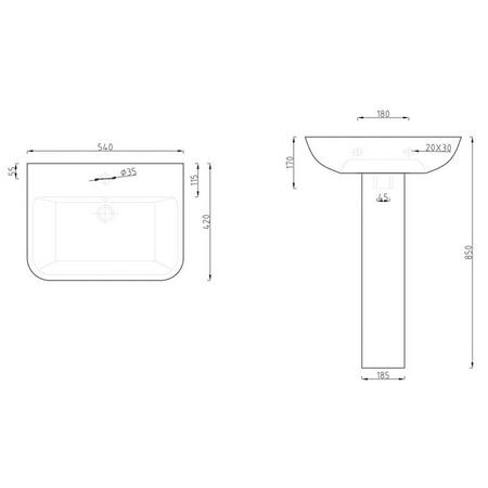 Opulent One Tap Hole Basin and Full Pedestal (OBC108877)