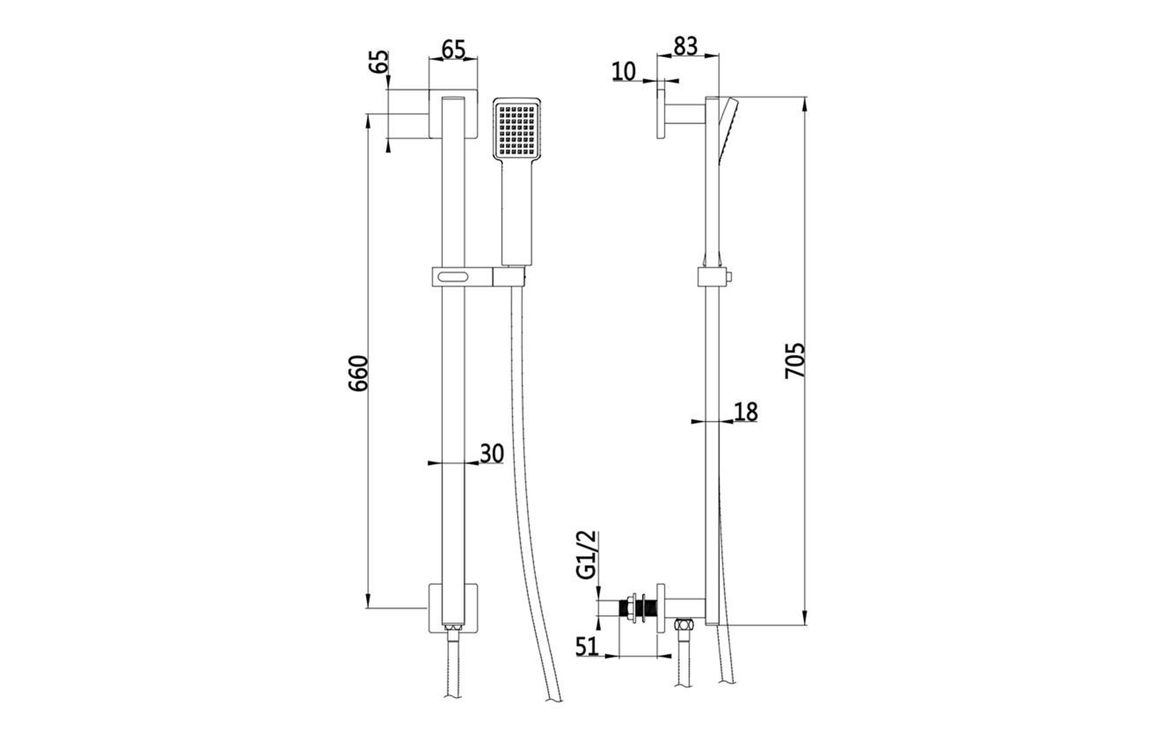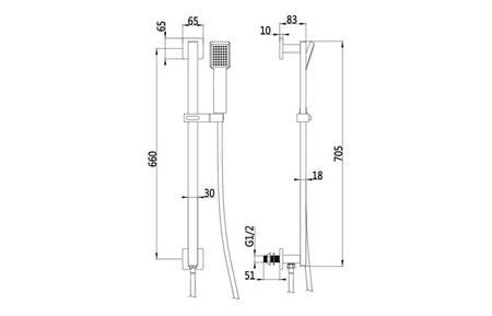- Dimensions: H 660mm x W 130mm x D 83mm