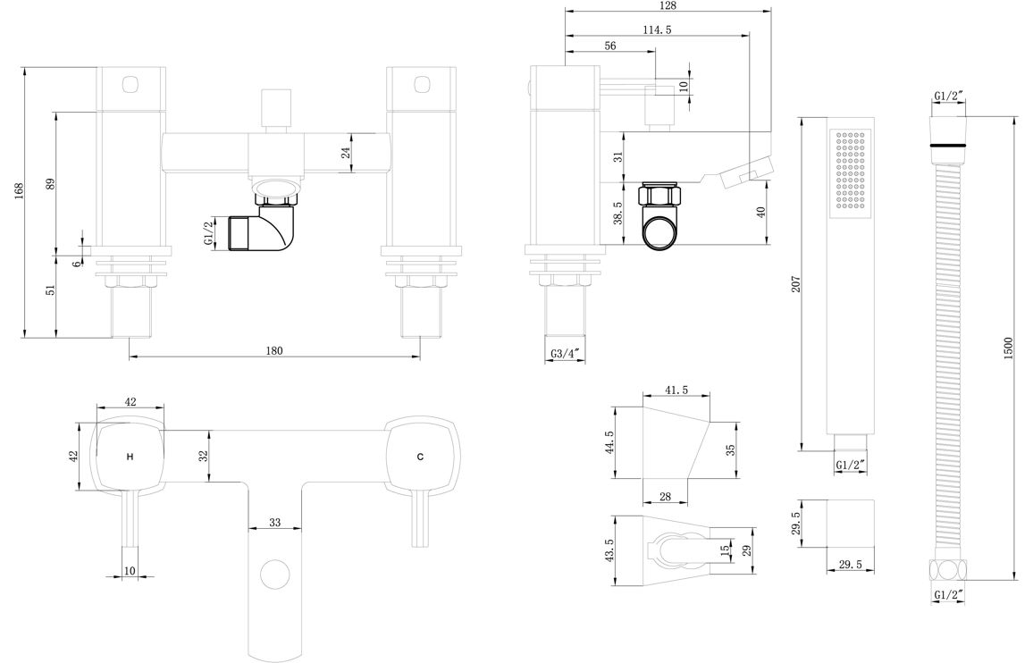 - High Pressure Deck Mounted Chrome Bath Shower Mixer