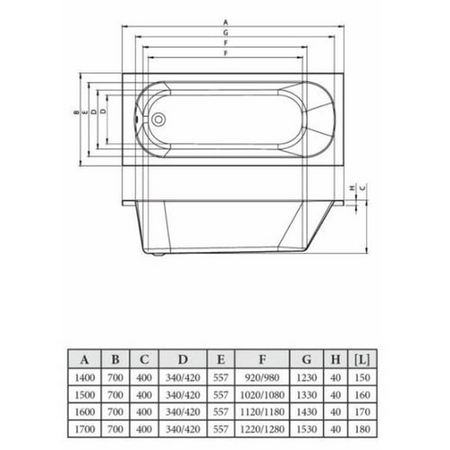 Opulent Single End 1700x700x400mm Bath with Legs (OBC3461)