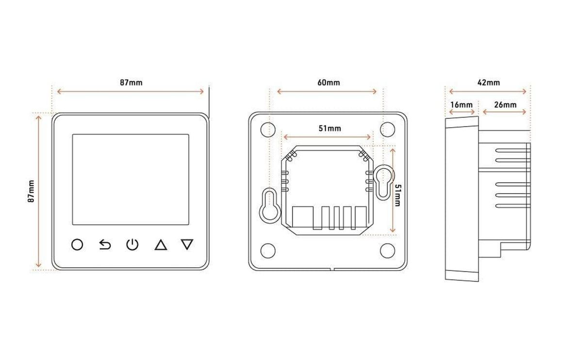 - This Thermostat pairs to your home WIFI using an application which is available from both Android and iOS platforms.