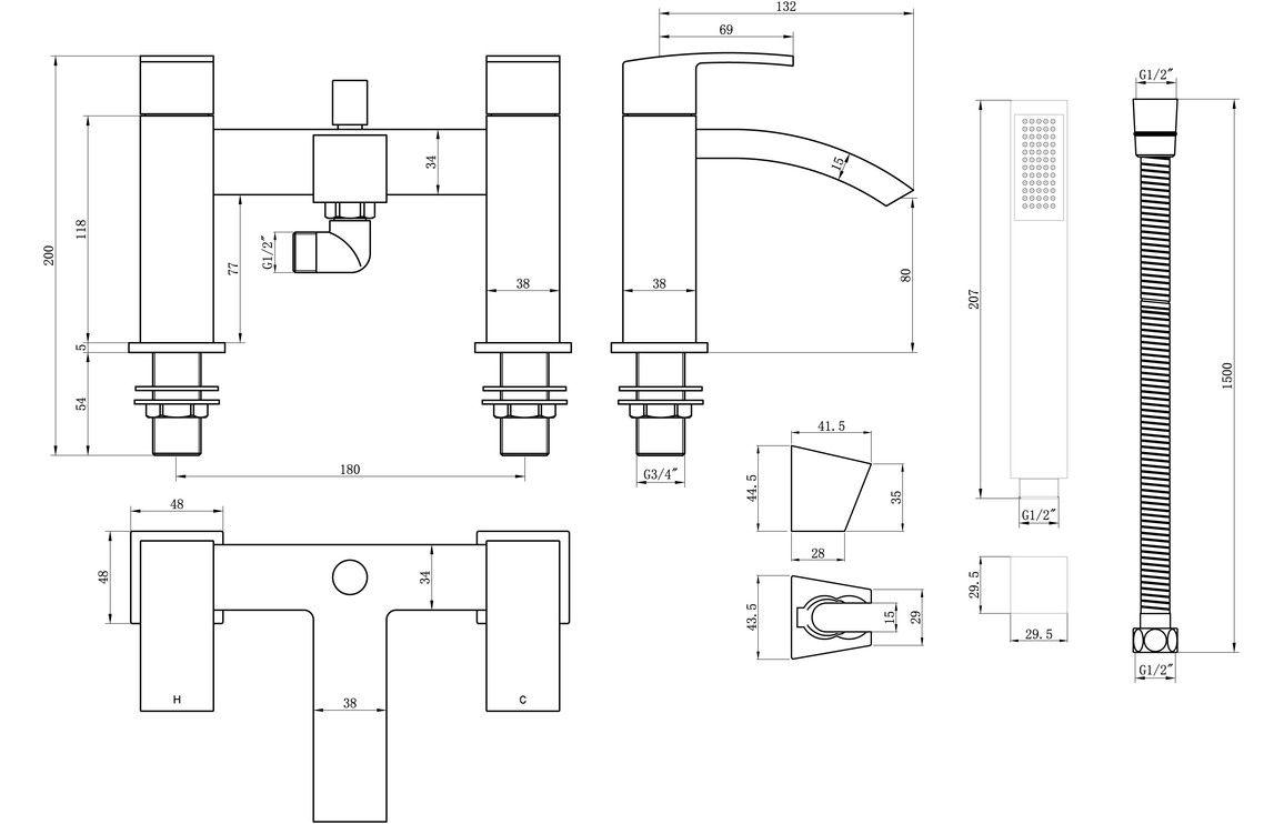 - Includes hose handset and bracket