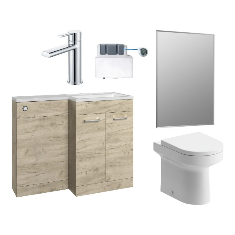 Opulent Vanessa 1000mm Furniture and Back to Wall WC Pack - Oak - Right Hand (OBC111622)