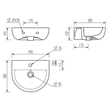 Opulent Wembley 450x400mm One Tap Hole Cloakroom Basin and Brushed Brass Bottle Trap (OBC106864)