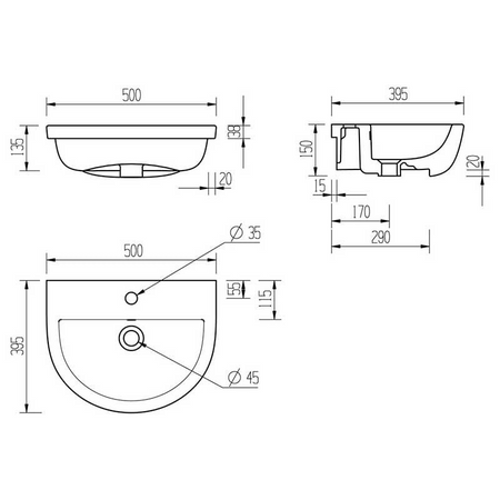 Opulent Wembley 500x390mm One Tap Hole Semi Recessed Basin (OBC1829)