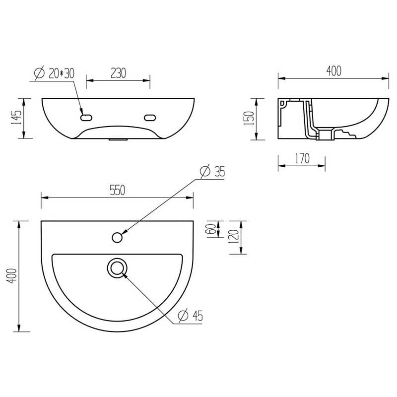 Opulent Wembley 550x400mm One Tap Hole Basin and Full Pedestal (OBC1830)