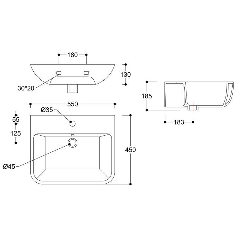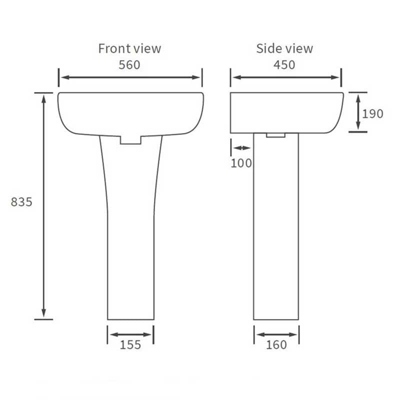Opulent Wren 560x450mm One Tap Hole Basin and Full Pedestal (OBC1779)